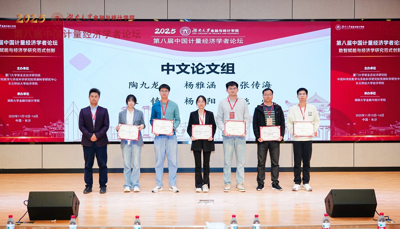 11月15日至16日,由厦门大学邹至庄经济研究院、中国科学院数学与系统科学研究院预测科学研究中心、东北财经大学经济学院共同主办,新葡京博彩官网-新葡京app 承办的第八届中国计量经济学者论坛在湖南大学举行。本次论坛以“数智赋能与经济学研究范式创新”为主题,汇聚海内外各高校专家学者、师生代表,共同探讨数智时代计量经济学的理论突破与应用前景。